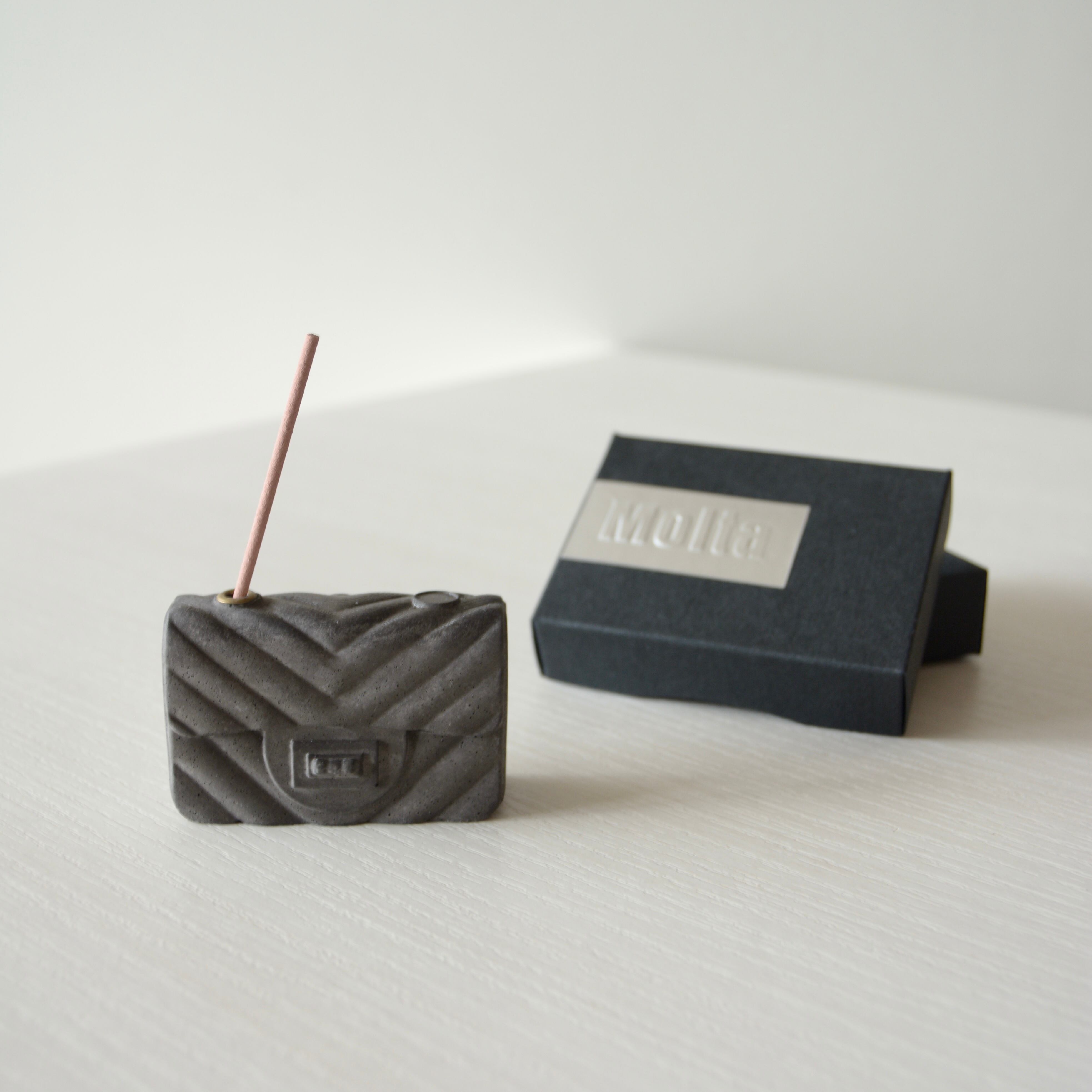 モルタルでお作りした、ヴィンテージ感あるバッグ型お香立てです。