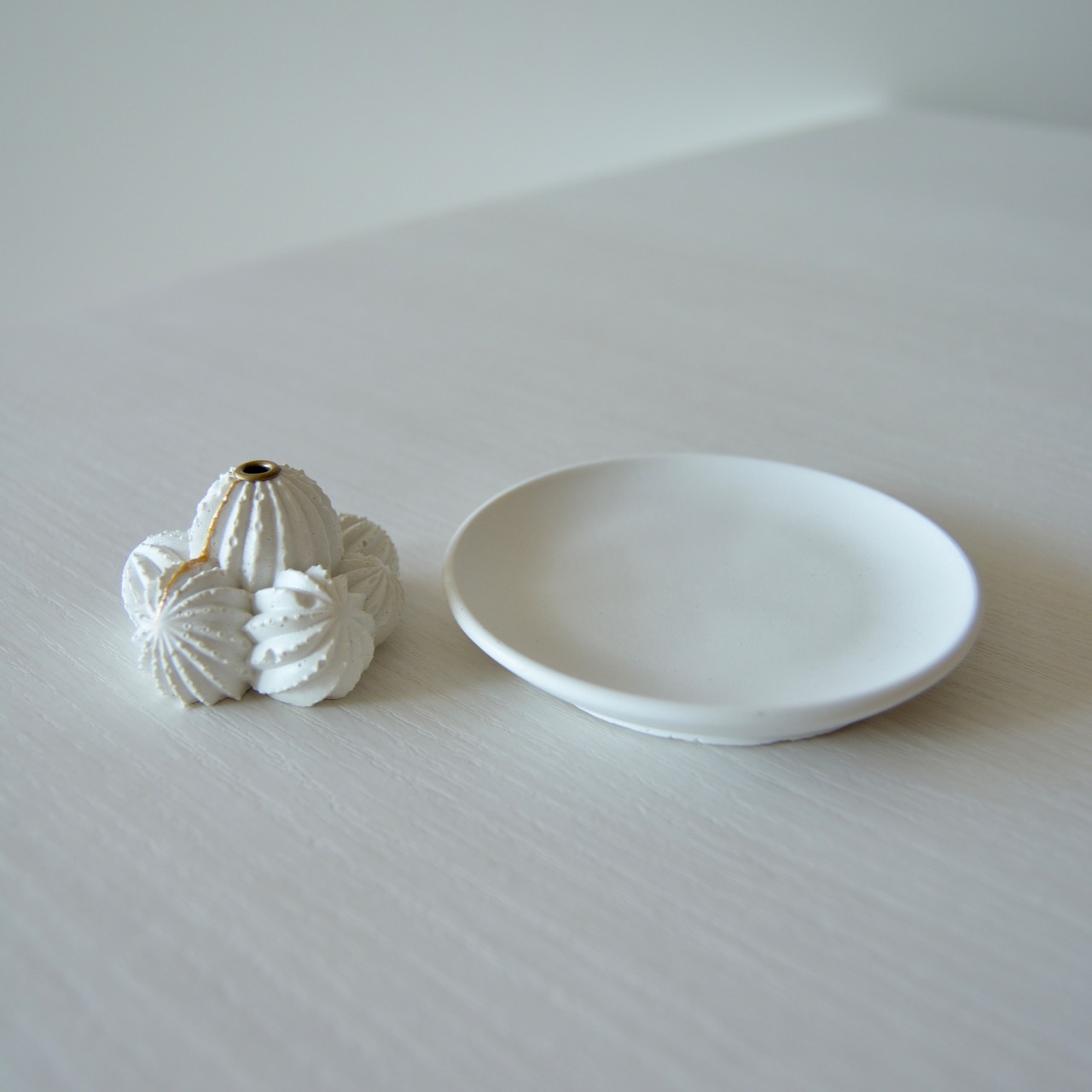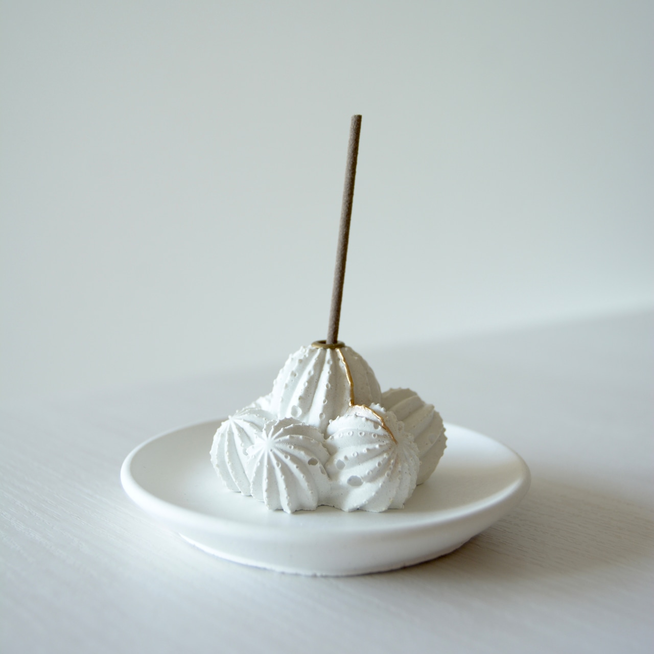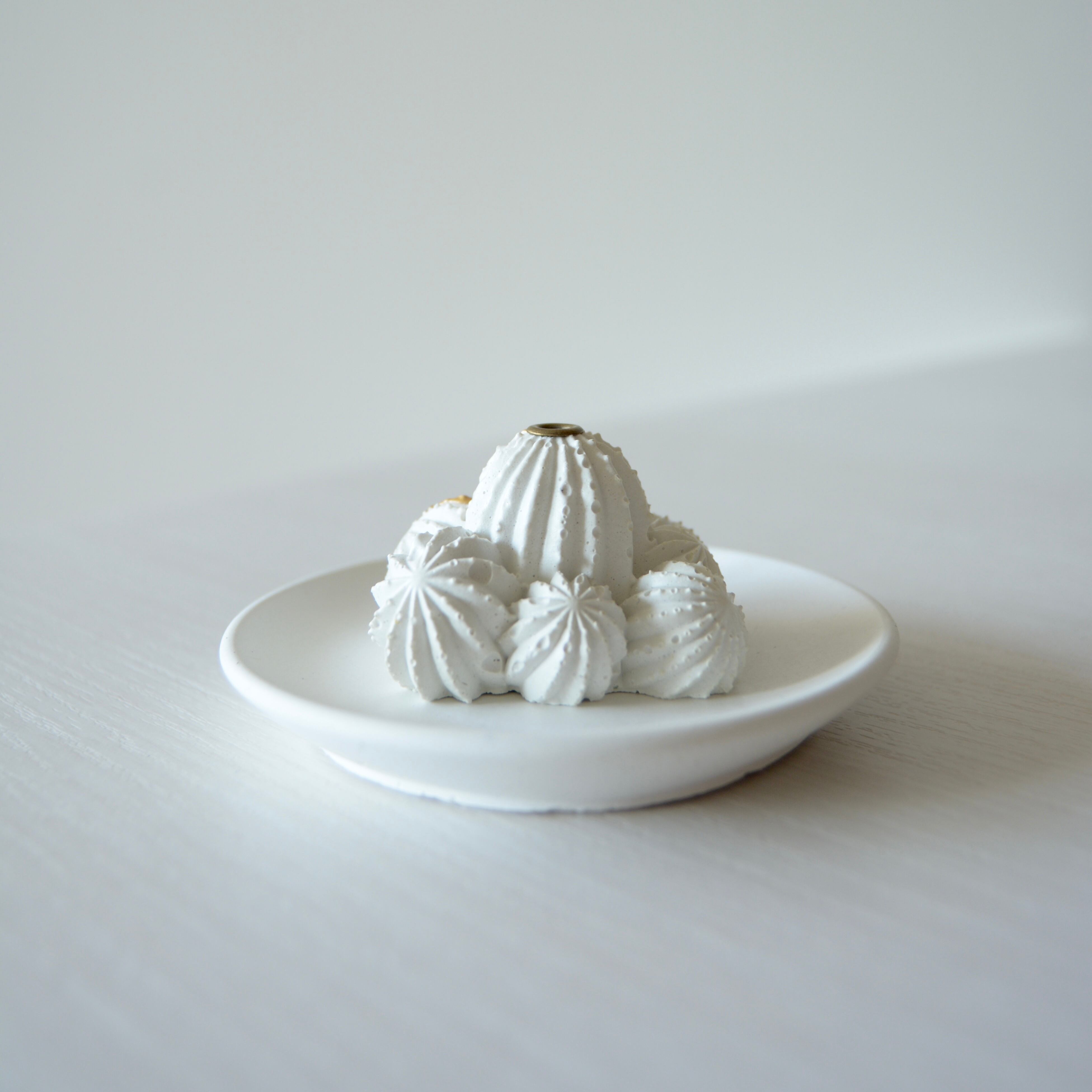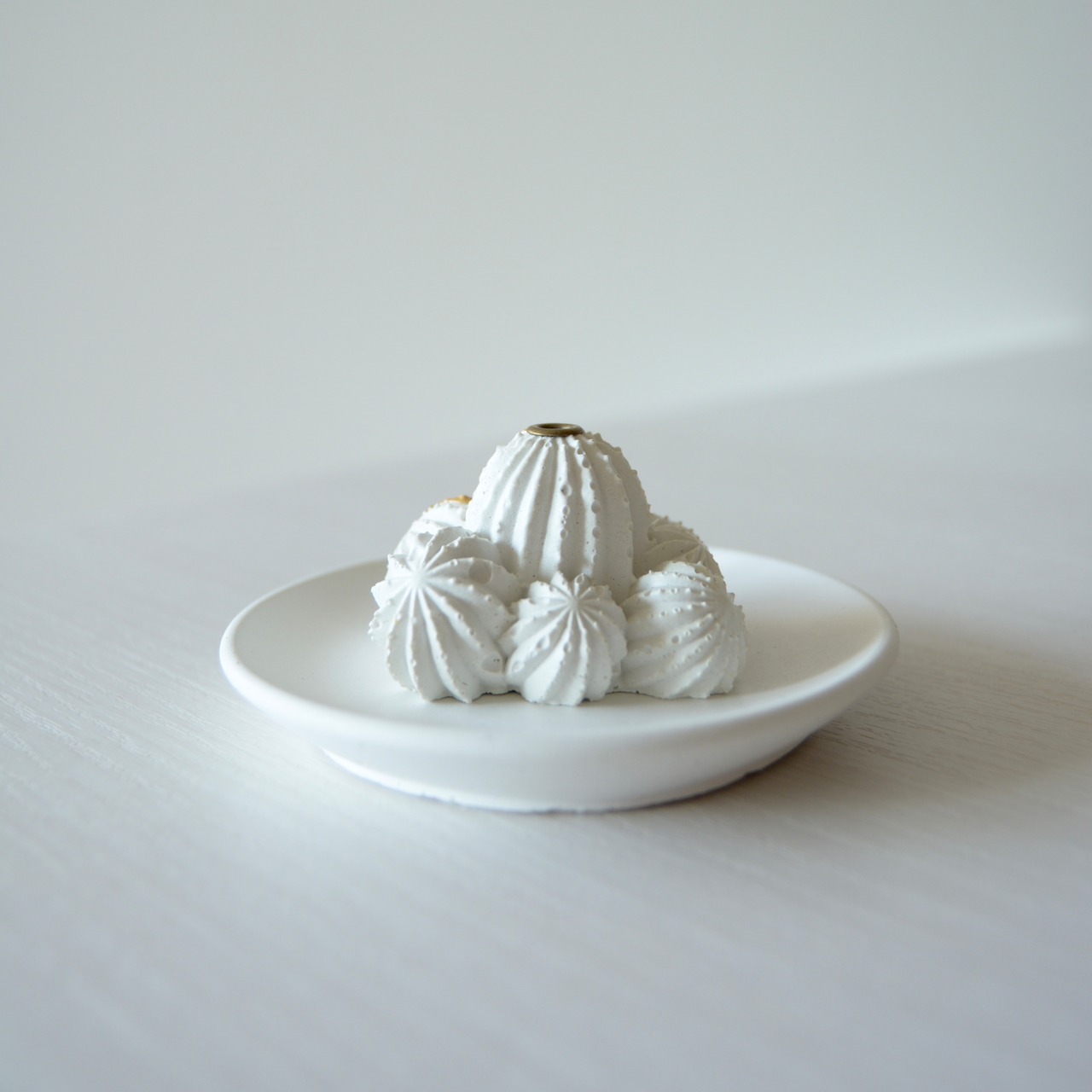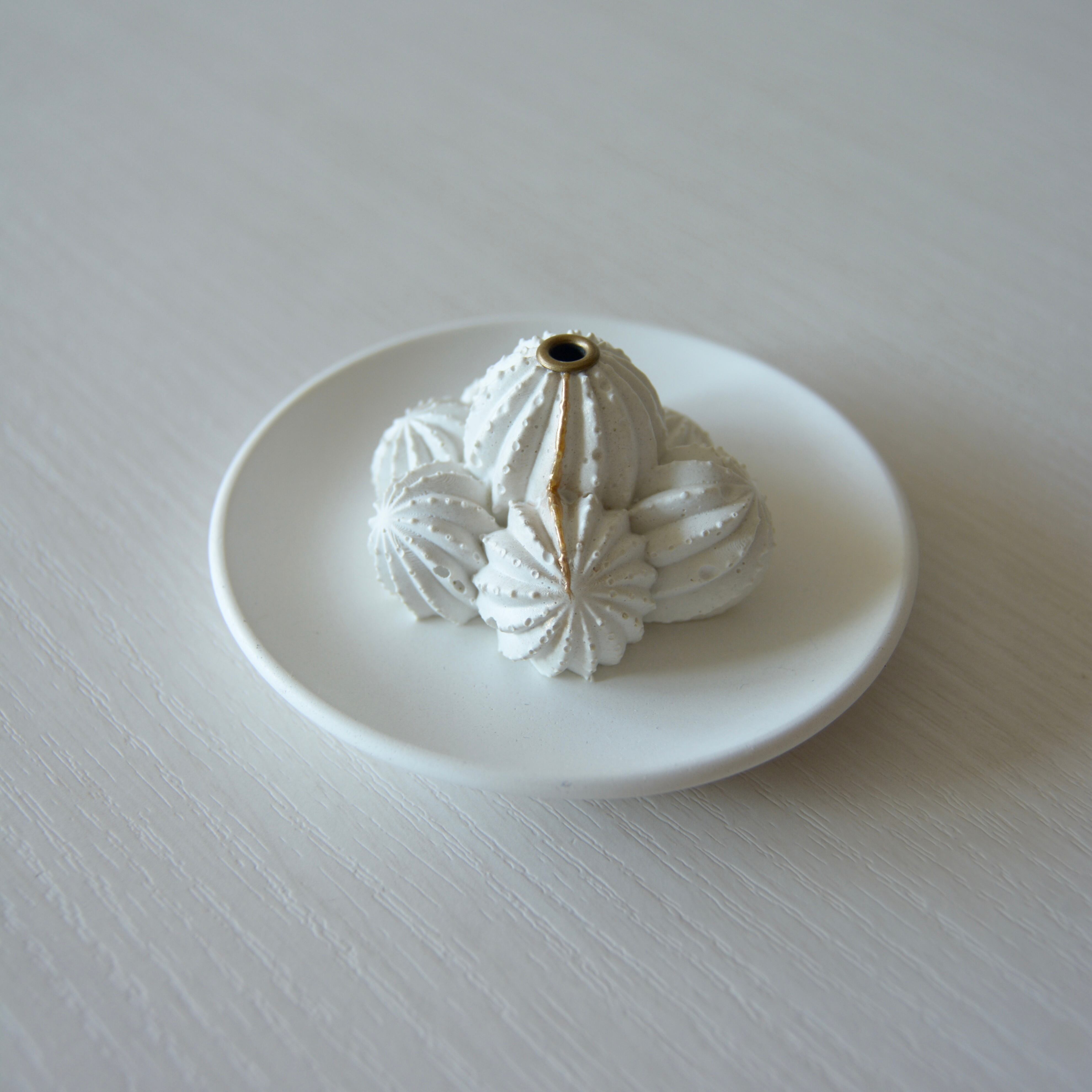 「刺珠」は、サボテンをモチーフにした、モルタル製の珠のようなお香立て。