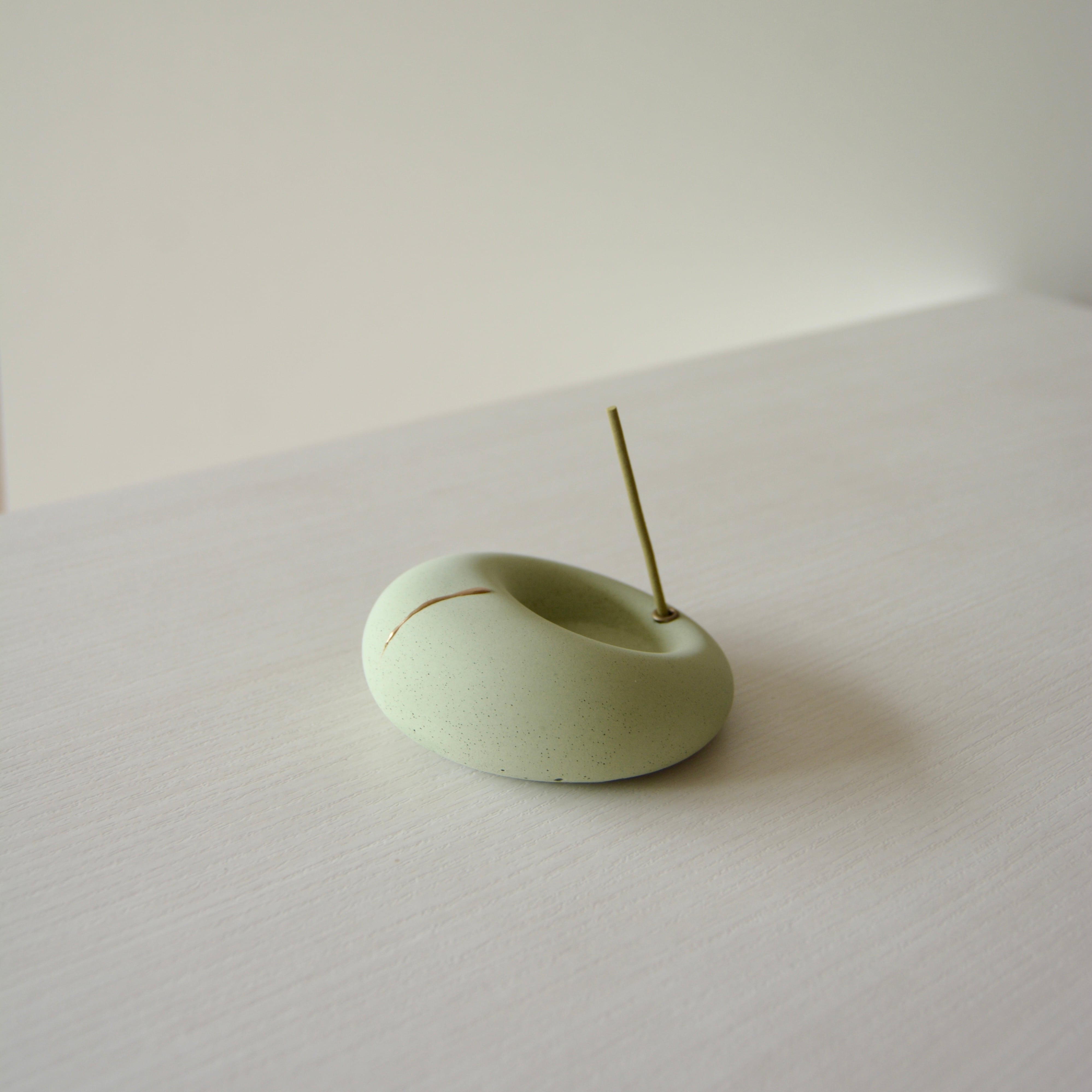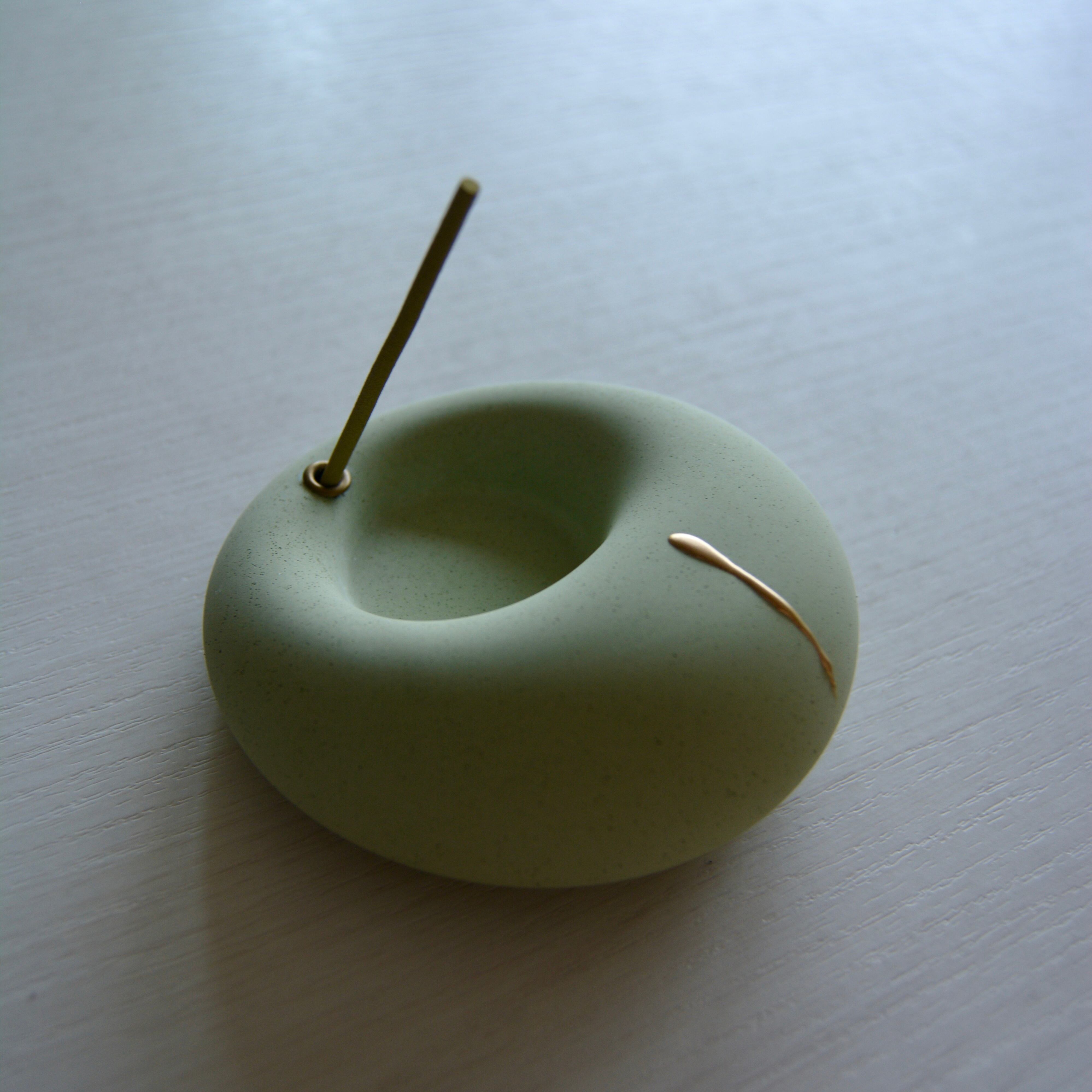モルタル製の香皿に、Moltaオリジナルの金粉を用いた装飾を施したお香立てです。