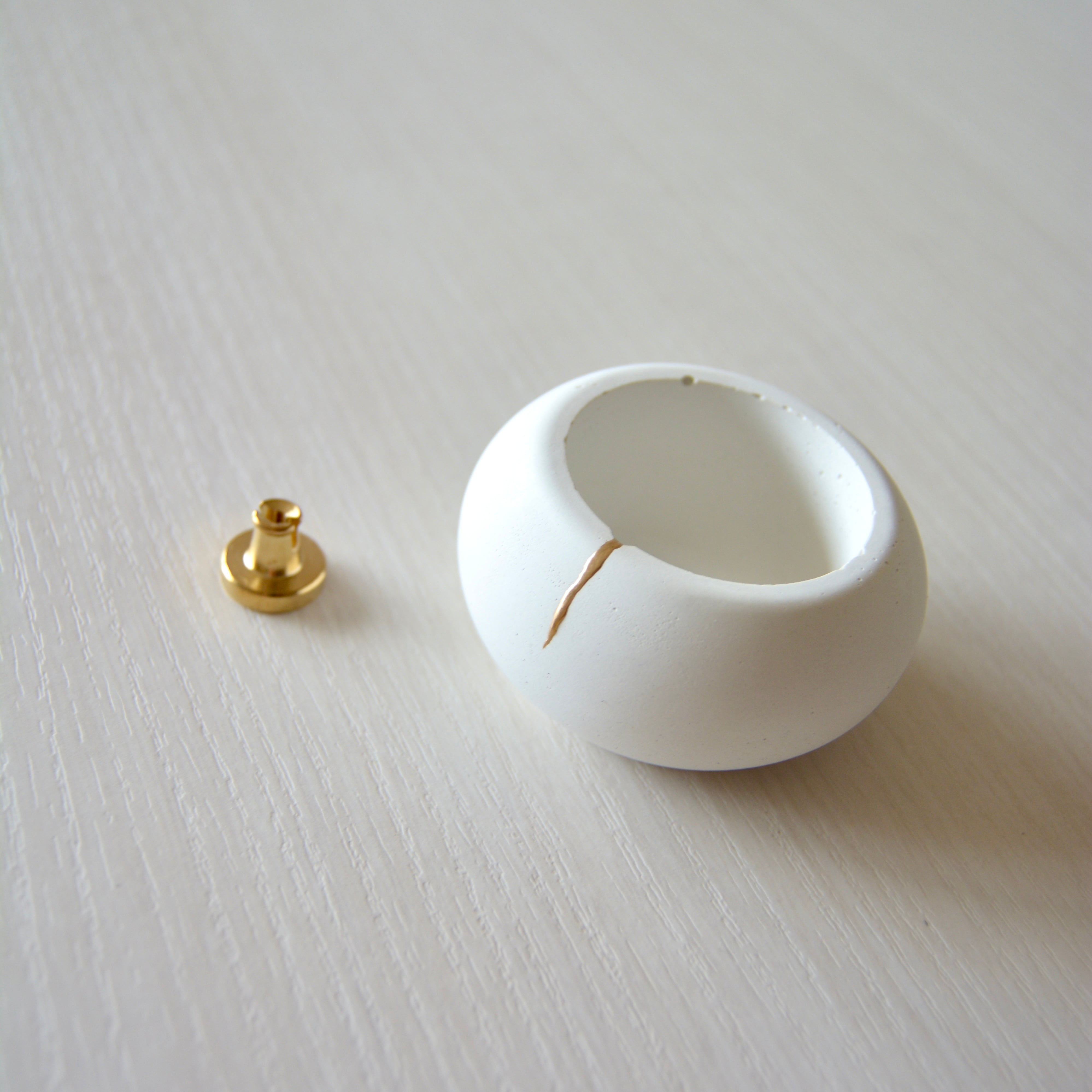 丸みのあるやさしいフォルムと、モルタルの質感。金粉を用いた装飾が、ほんのり華やかさを添えています。